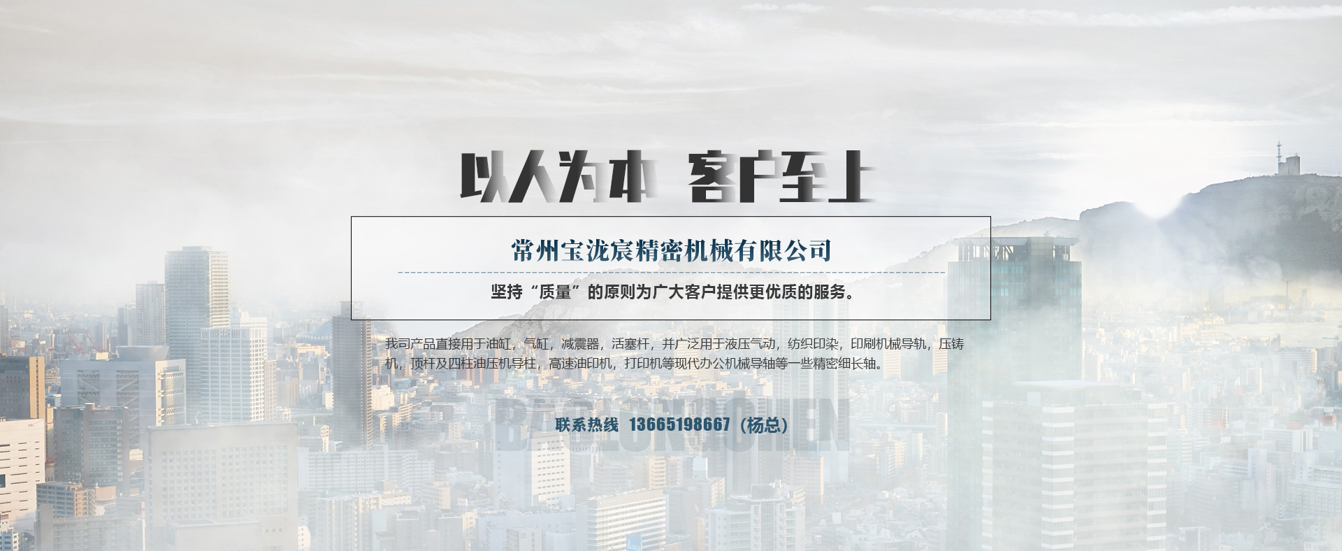 常州寶瀧宸精密機械有限公司主營活塞桿,缸筒,空心軸,調質高頻軸,導柱立柱,傳動軸,哥林柱,直線光軸,刀軸等。擁有整條生產各類軸類的設備,生產的軸直線度高,表面光潔度好,硬度均勻。本公司專注生產精密細長軸采用精密冷拔,精磨和高精度拋光的先進工藝制造,各項技術指標均符合并超過標準。我司產品直接用于油缸,氣缸,減震器,活塞桿,并廣泛用于液壓氣動,紡織印染,印刷機械導軌,壓鑄機,注塑機導桿,活塞桿,頂桿及四柱油壓機導柱,傳真機,復印機,高速油印機,打印機等現代辦公機械導軸等一些精密細長軸。公司秉承“以人為本,客戶為上”的經營理念,堅持“質量”的原則為廣大客戶提供更優(yōu)質的服務。歡迎各界客戶蒞臨指導。